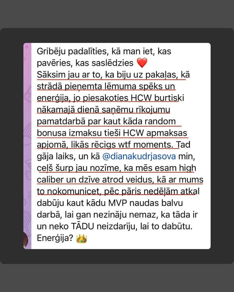 “Piesakoties HCW burtiski nākamajā dienā saņēmu bonusu...”